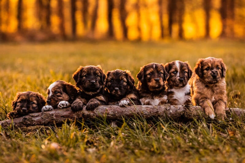 Am 19. Februar 2022 erblickte Darcy in der Zuchtstätte "vom Lummerland" in Bovenden in der Nähe von Göttingen das Licht der Welt. Die hübsche Hündin rechts im unteren Bild – ein echter Hingucker von Anfang an. Nach ein paar wundervollen Wochen in Göttingen hat Darcy schließlich ihr neues Zuhause bei uns in Lette gefunden. Darcys Eltern sind Chaleesi vom Lummerland, eine Wällerhündin, und Herr Hutch Born vom Wandersmann, ein Briardrüde. An dieser Stelle geht unser herzliches Dankeschön an die Familie Harrington für die liebevolle Aufzucht von Darcy und ihren Geschwistern. Mit viel Herzblut, Einsatz und Fachkunde hat Christina mit ihrer Familie tolle Wäller-Exemplare gezüchtet. Danke auch, dass ihr Darcy einen so tollen Start in ihr Leben in Göttingen ermöglicht habt.